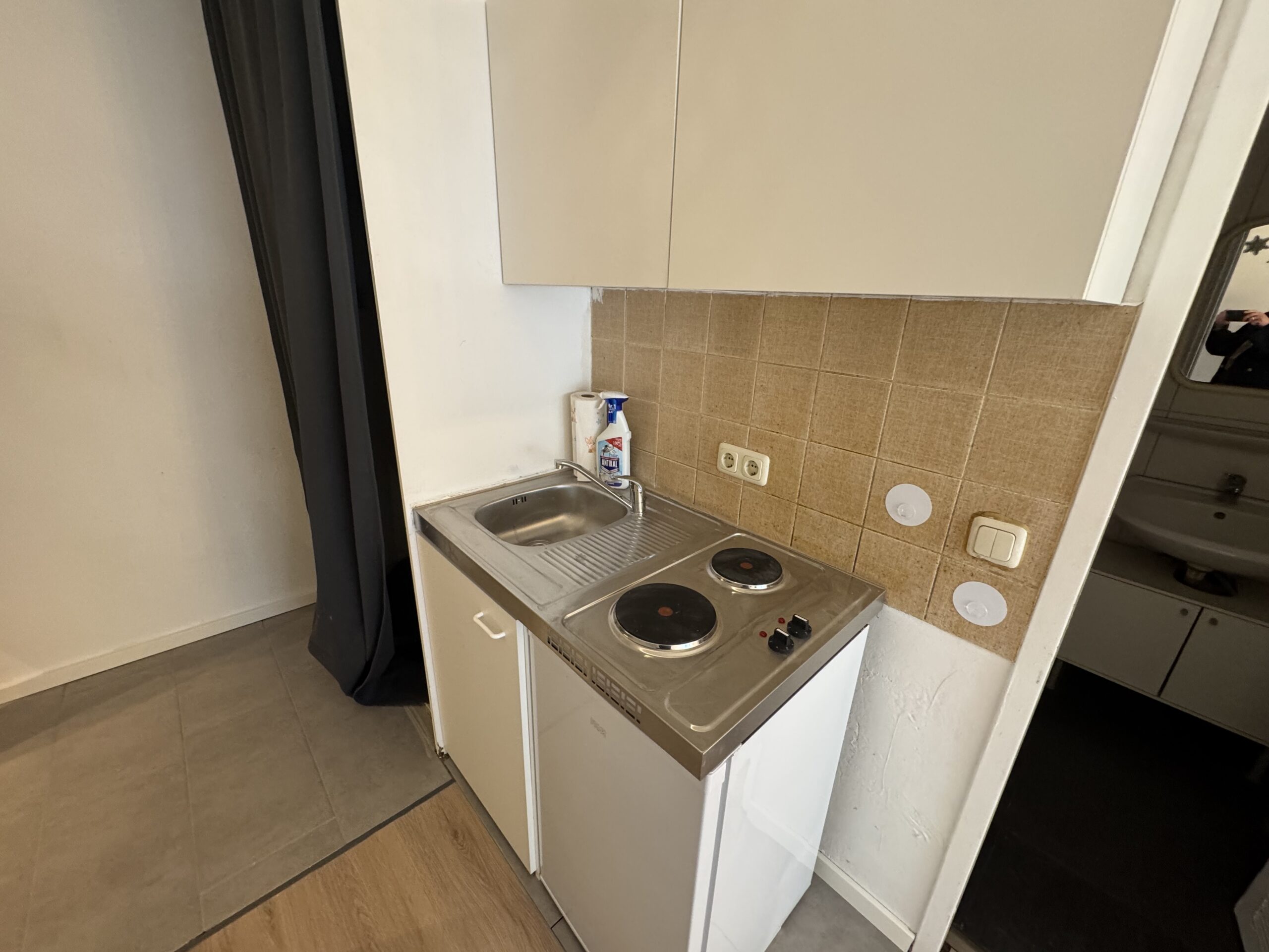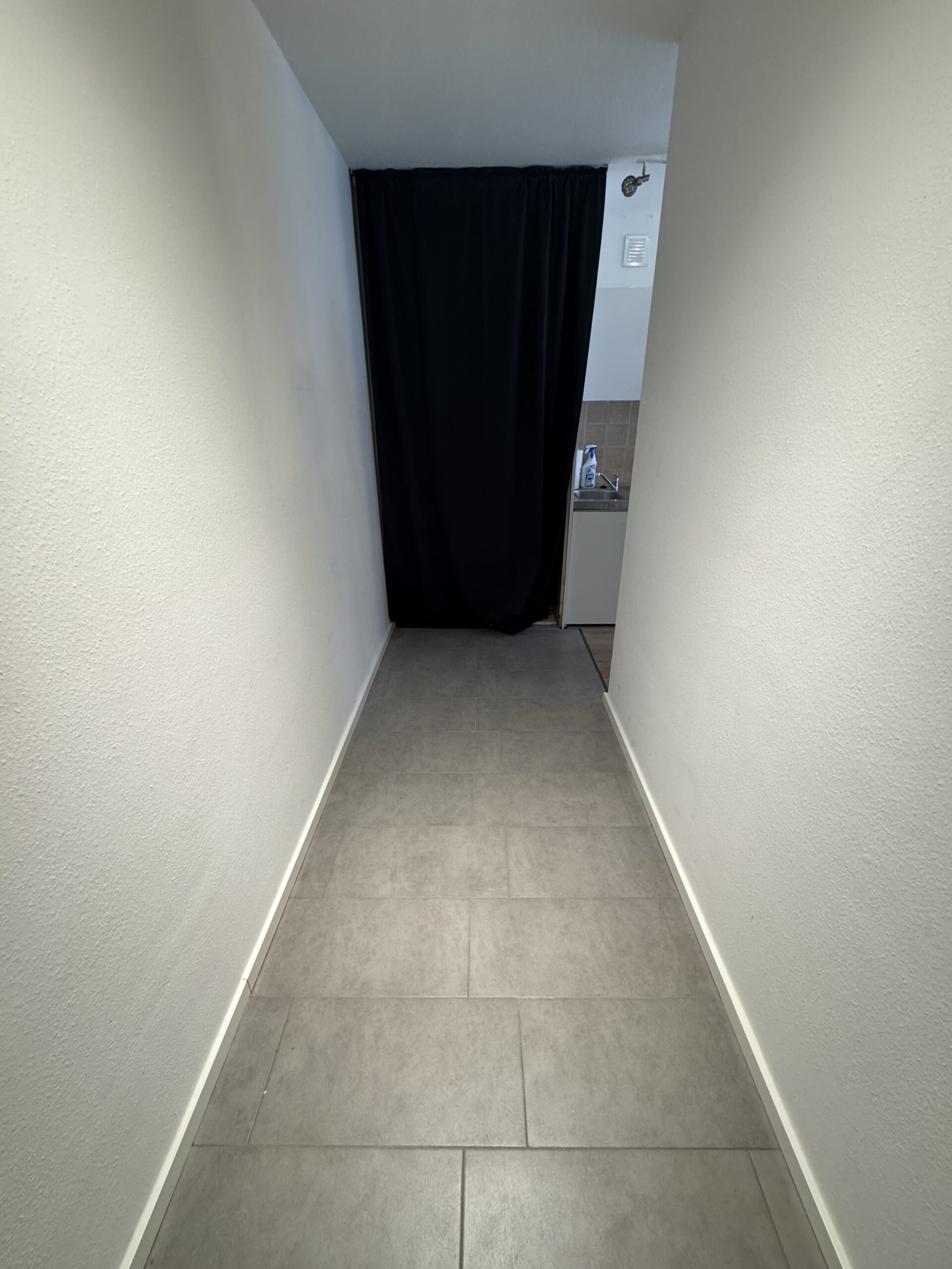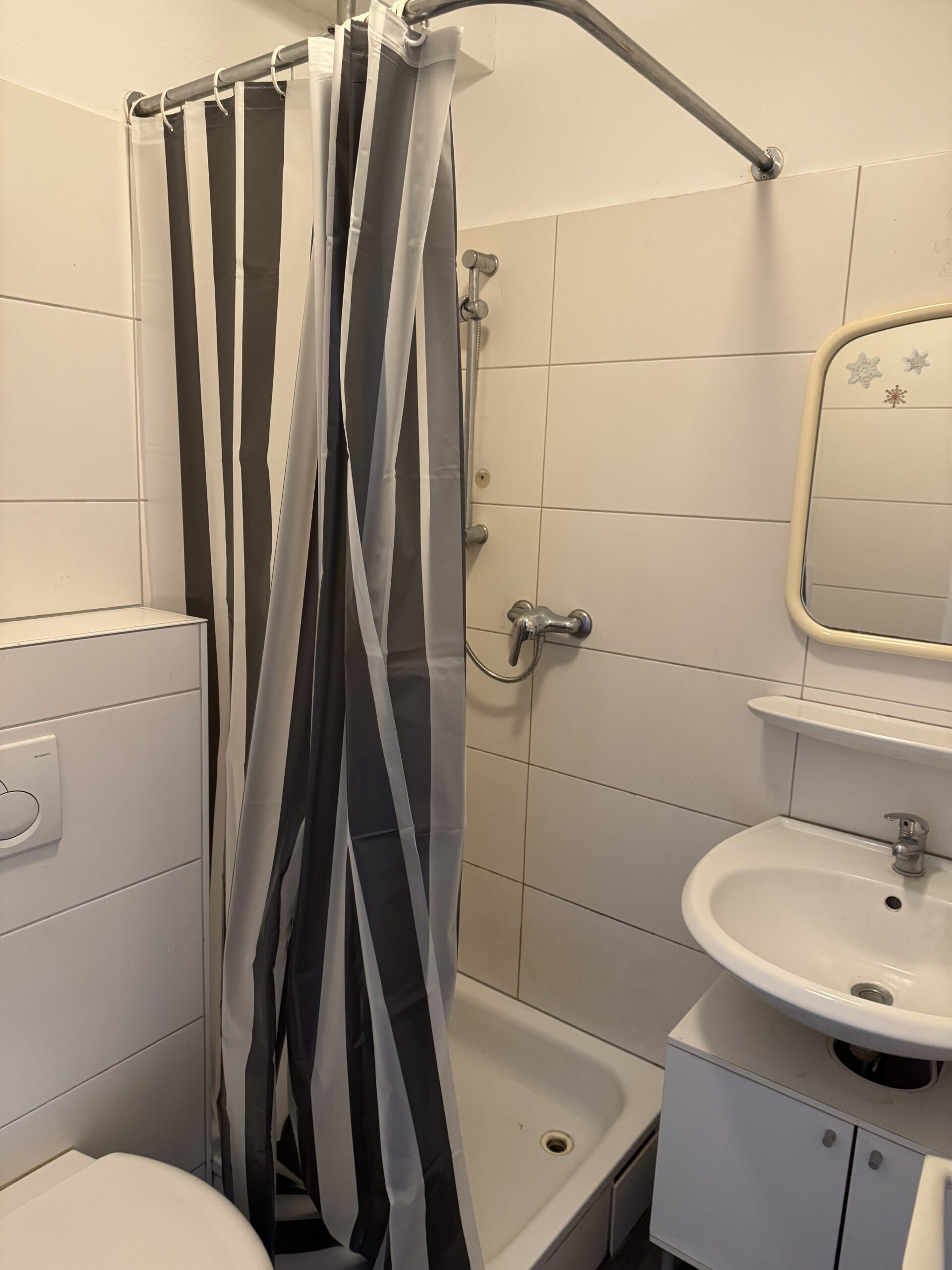 Die Wohnung ist gerade renoviert worden. Das Badezimmer ist mit einer Dusche und einem Waschbecken ausgerüstet.