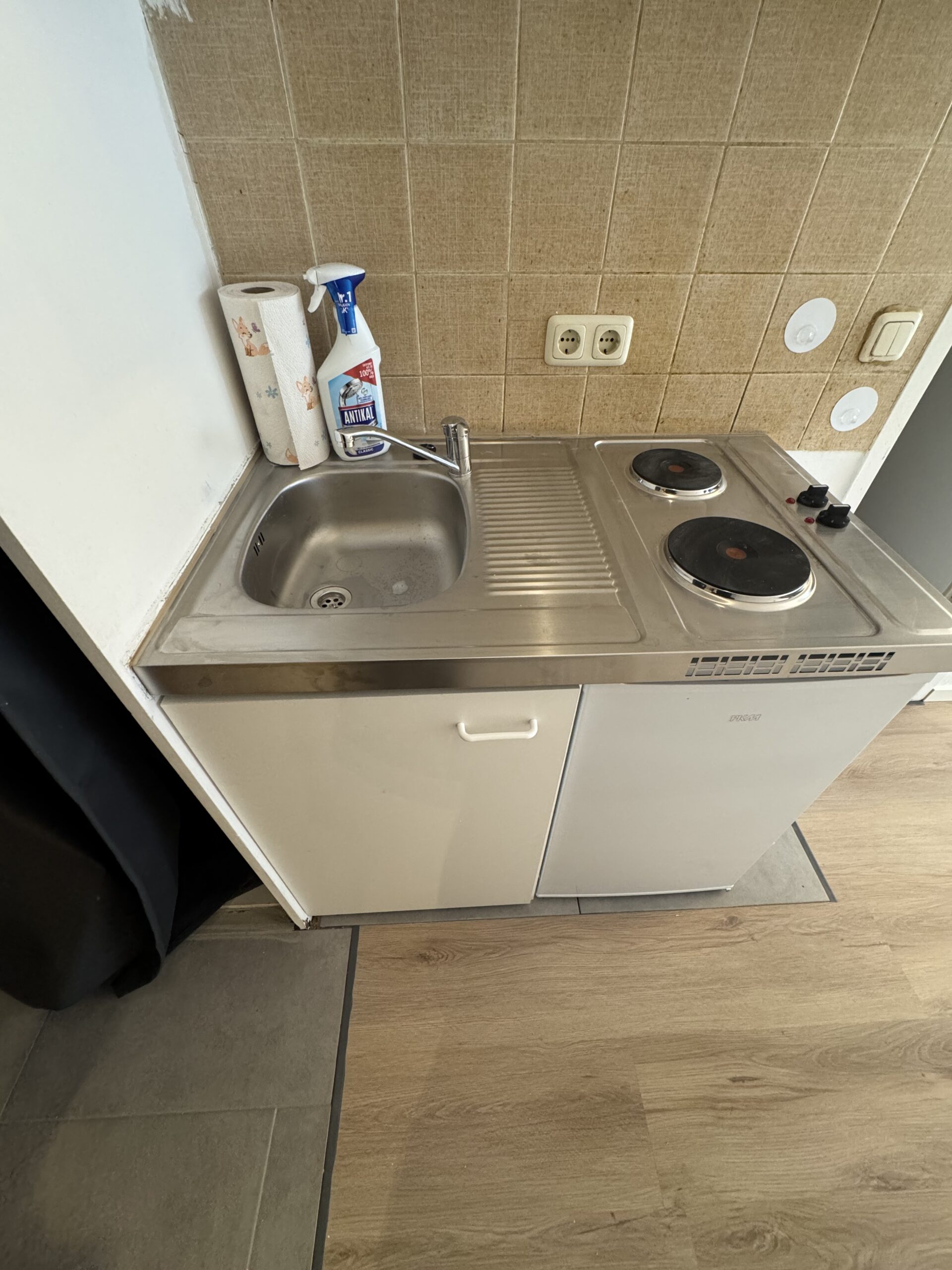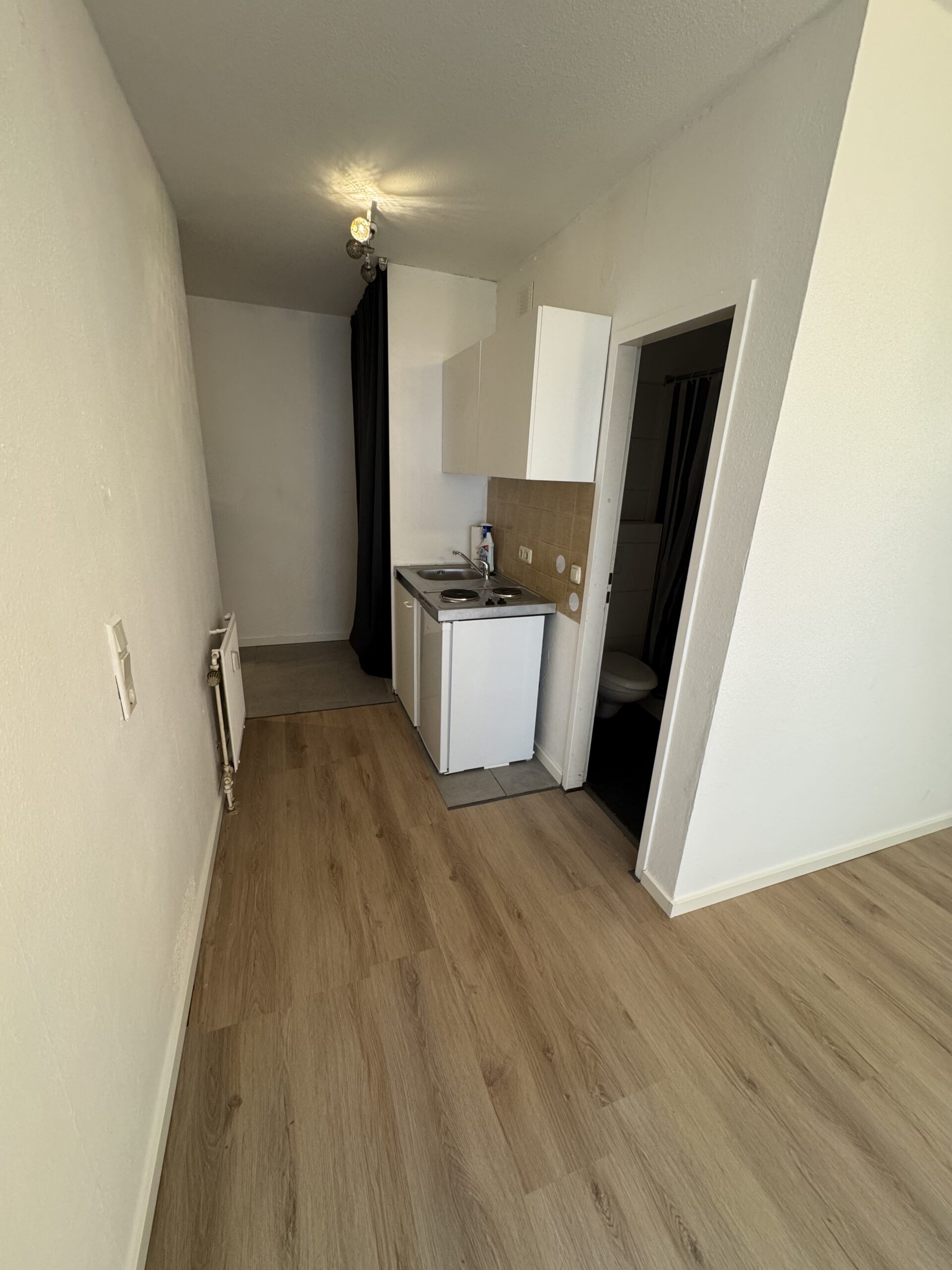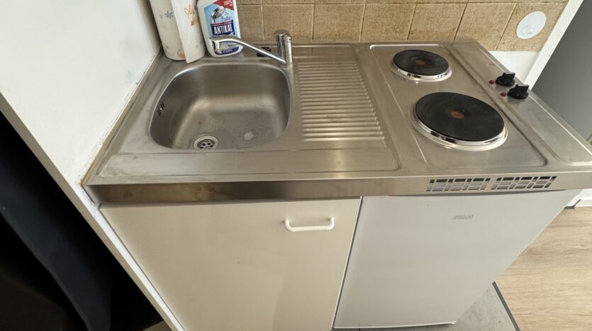 Die Wohnung ist gerade renoviert worden. Das Badezimmer ist mit einer Dusche und einem Waschbecken ausgerüstet.