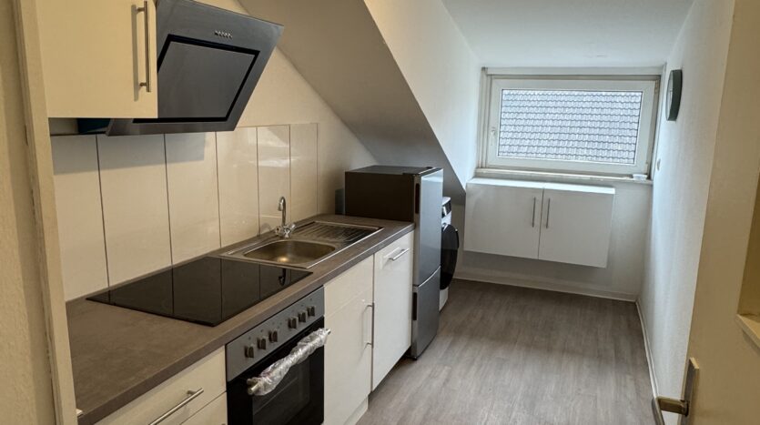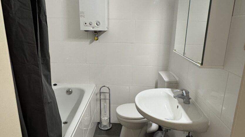 Die Wohnung zeichnet sich durch ein geräumiges Wohnzimmer, ein komfortables Schlafzimmer, ein solide ausgestattetes Badezimmer mit Badewanne, sowie eine praktische Küche mit einer nagelneuen Einbauküche aus.
