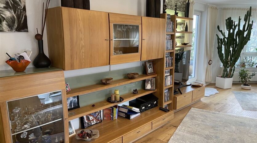 Das Herzstück des Objektes bildet ein großer, heller Wohn-Eßbereich, der zur Küche hin offen gestaltet ist, und nur durch eine Eßtheke, die aus Granit gefertigt wurde, von der Küche getrennt ist. Die vorhandene schöne Einbauküche, läßt auch für ambitionierte Köche keine Wünsche offen. Bei dem in allen Zimmern verlegten Parkett handelt es sich um einen Barfuß-Wohlfühl-Fußboden, der durch einen besonderen Schliff, beim Laufen die Fußsohlen masiert. Die großen Fensterflächen sorgen für eine außerordentliche Helligkeit. Das äußerst geschmackvoll gestaltete Badezimmer wurde mit übergroßen Marmorfliesen versehen. Als ein weiteres Highlight ist die große Terrasse anzusehen, die man von jedem Zimmer erreichen kann, und die mit hochwertigen Outdoormöbeln ausgestattet wurde.