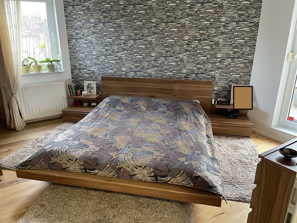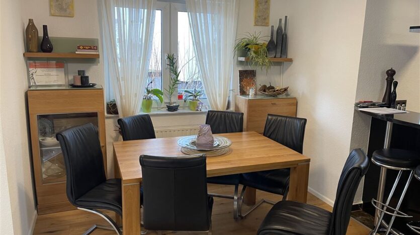 Diese komplett, und äußerst geschmackvoll möblierte Etagenwohnung befindet sich im 1. Obergeschoss eines gepflegten Neubaus aus dem Jahr 1995 mit insgesamt drei Etagen. Die Wohnung bietet eine Wohnfläche von 101 m², die sich auf drei Zimmer verteilt. Ein interessantes Schlafzimmer mit einem ungewöhnlichen Schnitt, ein modernes Badezimmer mit Badewanne sowie ein großzügiger, offener Wohn- und Essbereich mit Einbauküche sorgen für hohen Komfort. Ergänzend zur Wohnung stehen ein Balkon und eine Terrasse zur Verfügung.