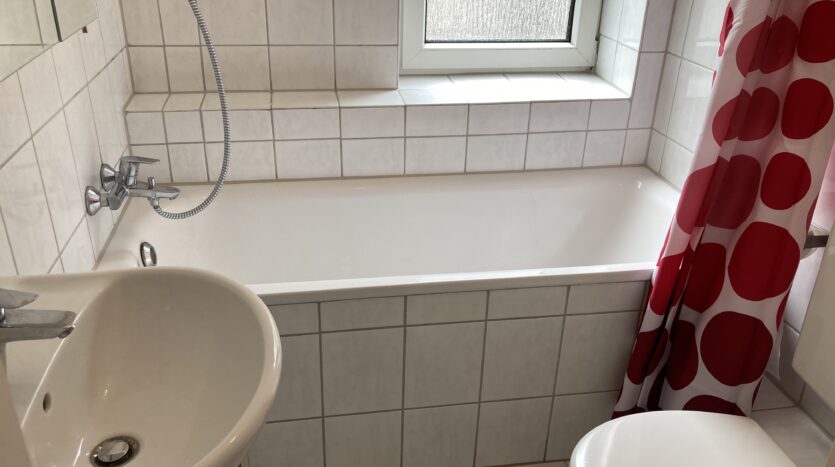 Der Wohnbereich ist mit Fliesenboden ausgestattet. Die Einbauküche gehört zur Ausstattung der Wohnung und das Tageslichtbad ist mit einer Badewanne ausgestattet. Zusätzlichen Komfort bieten ein gemeinschaftlicher Wasch-/Trockenraum sowie ein Kellerraum.